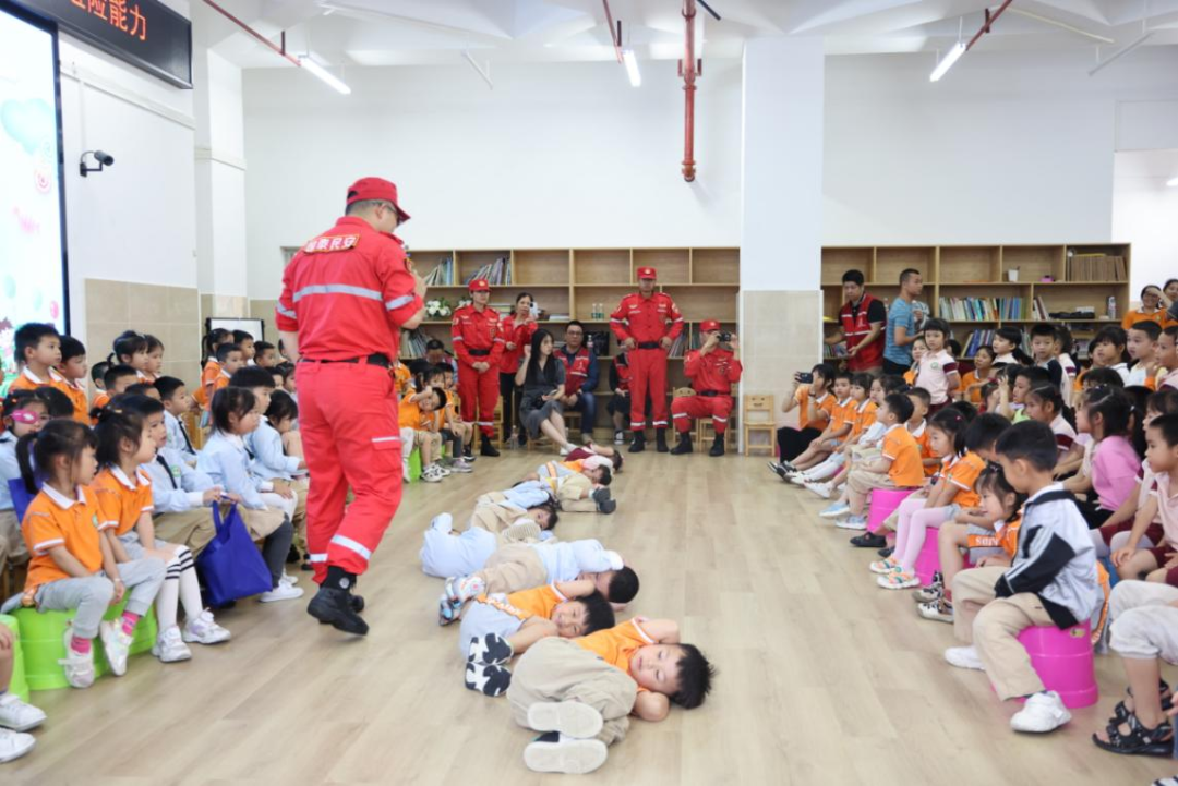 南宁市应急管理局保障和改善民生党员先锋服务队到良庆区银岭幼儿园开展防灾减灾宣传和防踩踏事故应急演练。